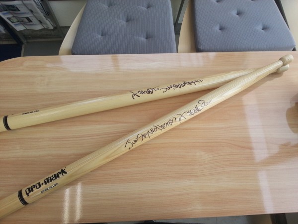 ジュンスカ 小林さんから巨大なドラムのスティックを頂戴しました。一見野球のバッドのようにも見えますが・・・(笑)